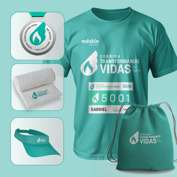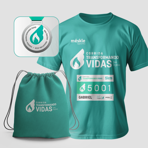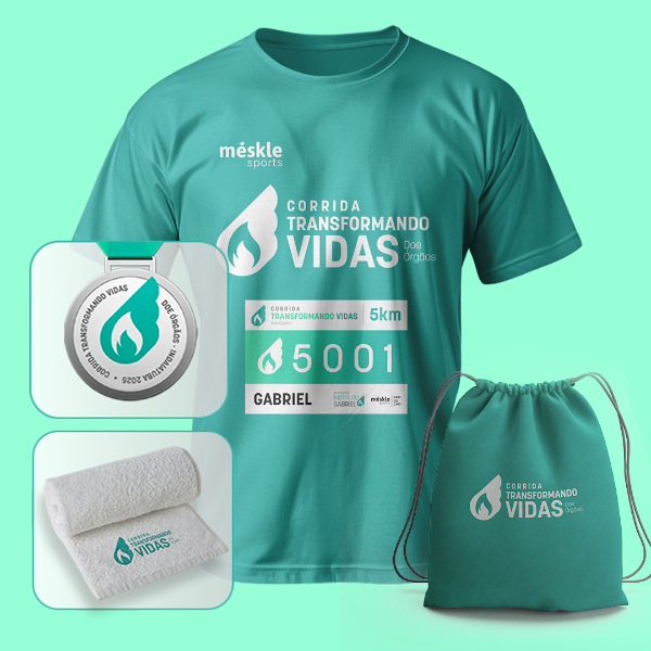💚 Kit Sensibilização – a decisão que transforma: Camiseta, sacochila, medalha finisher, toalinha, numeral + chip, pós prova com água gelada, banana, maça (percurso e chegada) e infraestrutura Méskle Sports.