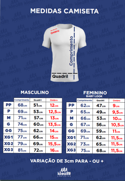 Obs: Caso o desafiante queira adiquirir modelos adicionais, o valor da camiseta é de $35,00 (R$35,00