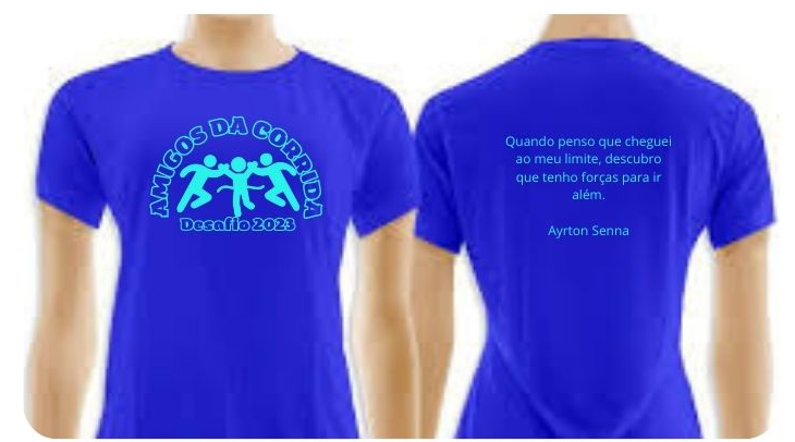 1.7 Haverá o Kit Camiseta e medalha, as camisetas serão enviadas aos participantes no início do desafio, respeitando o prazo de produção e fretes. As camisetas serão disponíveis nos modelos unissex e baby look, no formato regata, regata nadador ou básico. Cabendo ao desafiante a escolha no ato da inscrição. O valor do kit com camiseta é de R$50,00 (cinquenta reais).
